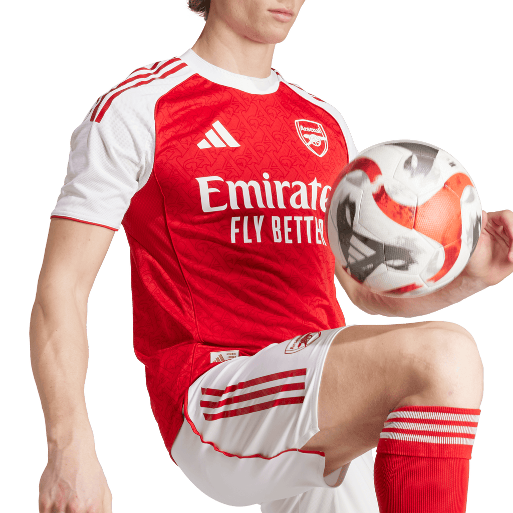 Red body. White sleeves. So far, so timeless. Look closely at this Arsenal home authentic jersey from adidas, though, and you'll see club DNA flows beyond the colours. Repeated across the front and back, Gothic-style A's from a vintage team badge add a finishing touch that all fans will appreciate. Created for performance, this lightweight football shirt was designed to help players create history of their own.