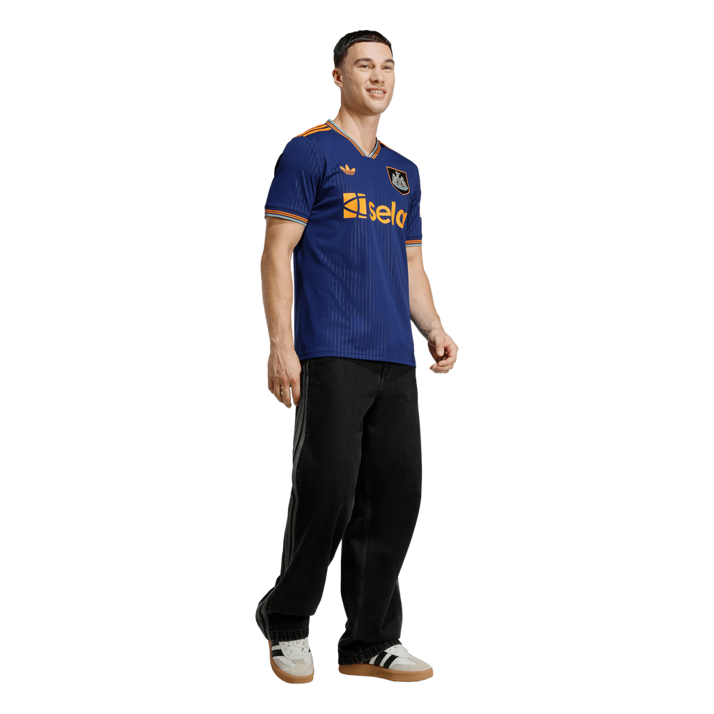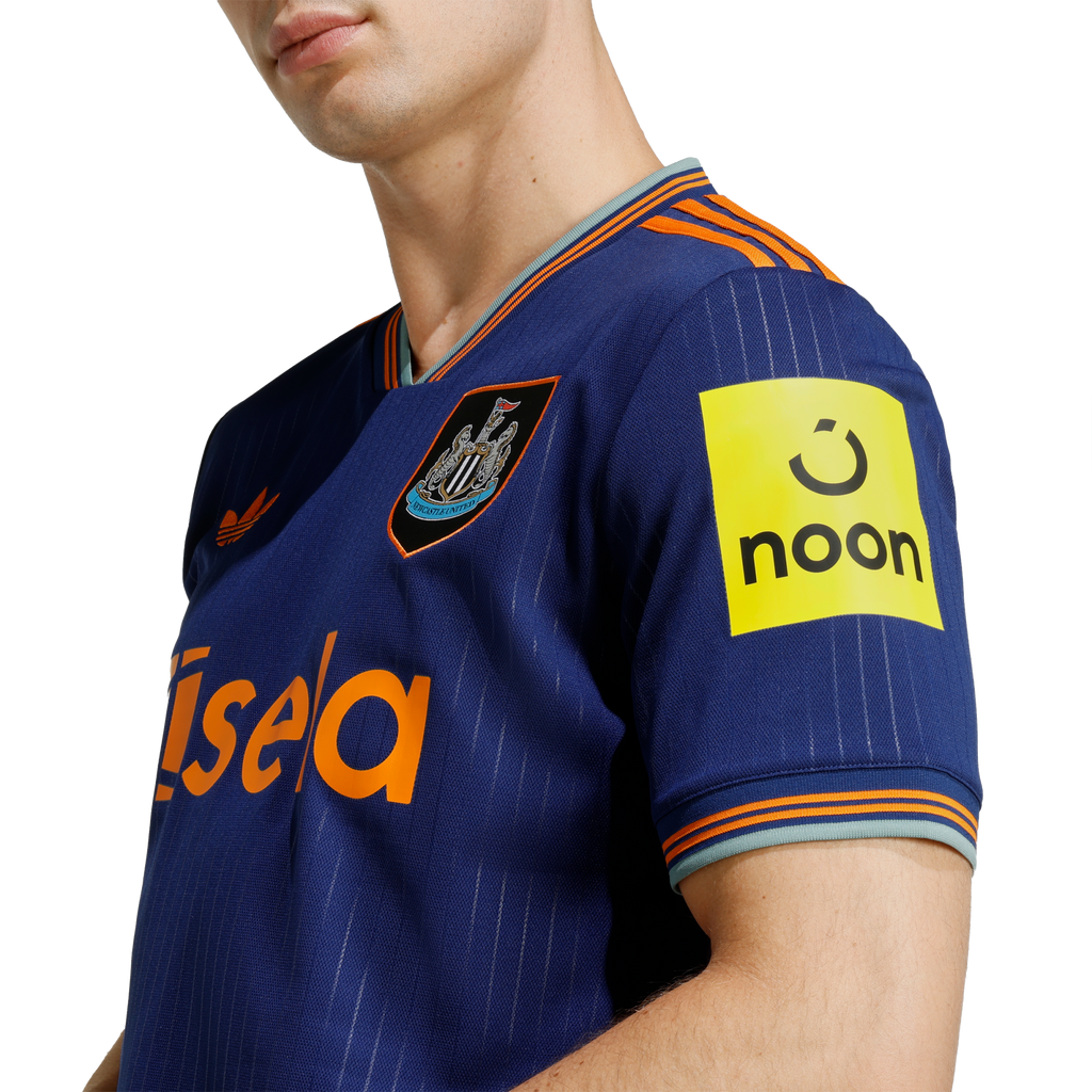 Dedicated followers of football fashion will immediately spot the inspiration behind the colours of this Newcastle United FC jersey. Remixed to create a brand-new icon, the blue, orange and green were borrowed (along with that sewn-on badge) from the club's 97/98 adidas away kit. Subtle pinstripes and a Trefoil add further elegance to a shirt designed to keep fans dry and comfortable.