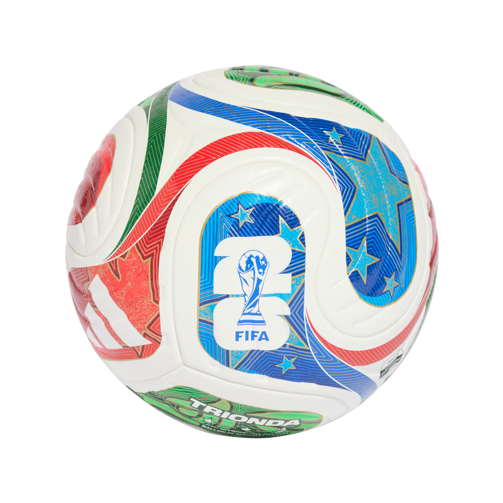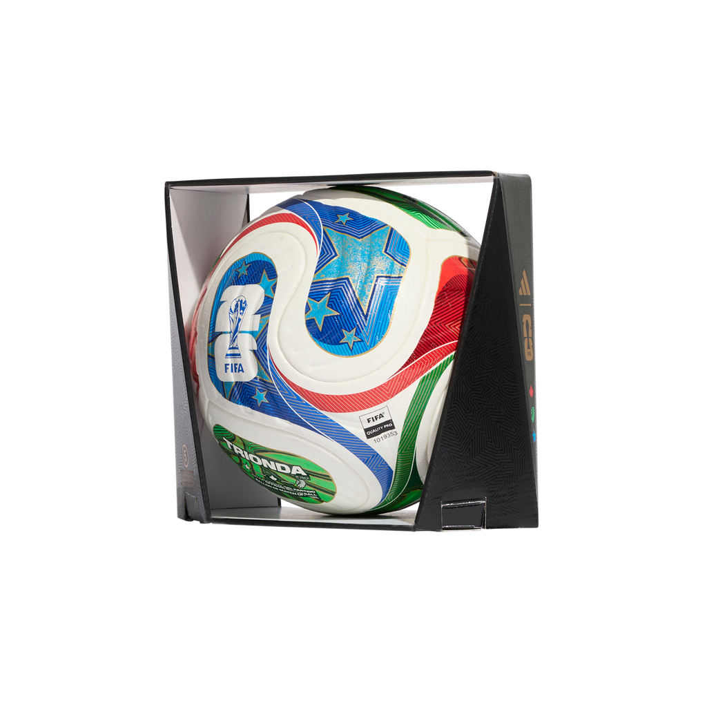 A spectacular sight first seen at sporting venues across the Americas, the iconic "la ola" wave inspires the flowing, four-panel design of this adidas Trionda Pro ball. The official football of the FIFA World Cup 26™, it has a seamless surface with an eye-catching texture and strategically placed debossing for optimal precision and in-flight stability. Vibrant colours and bold national symbols represent the tournament's three host countries.