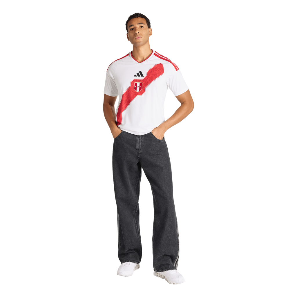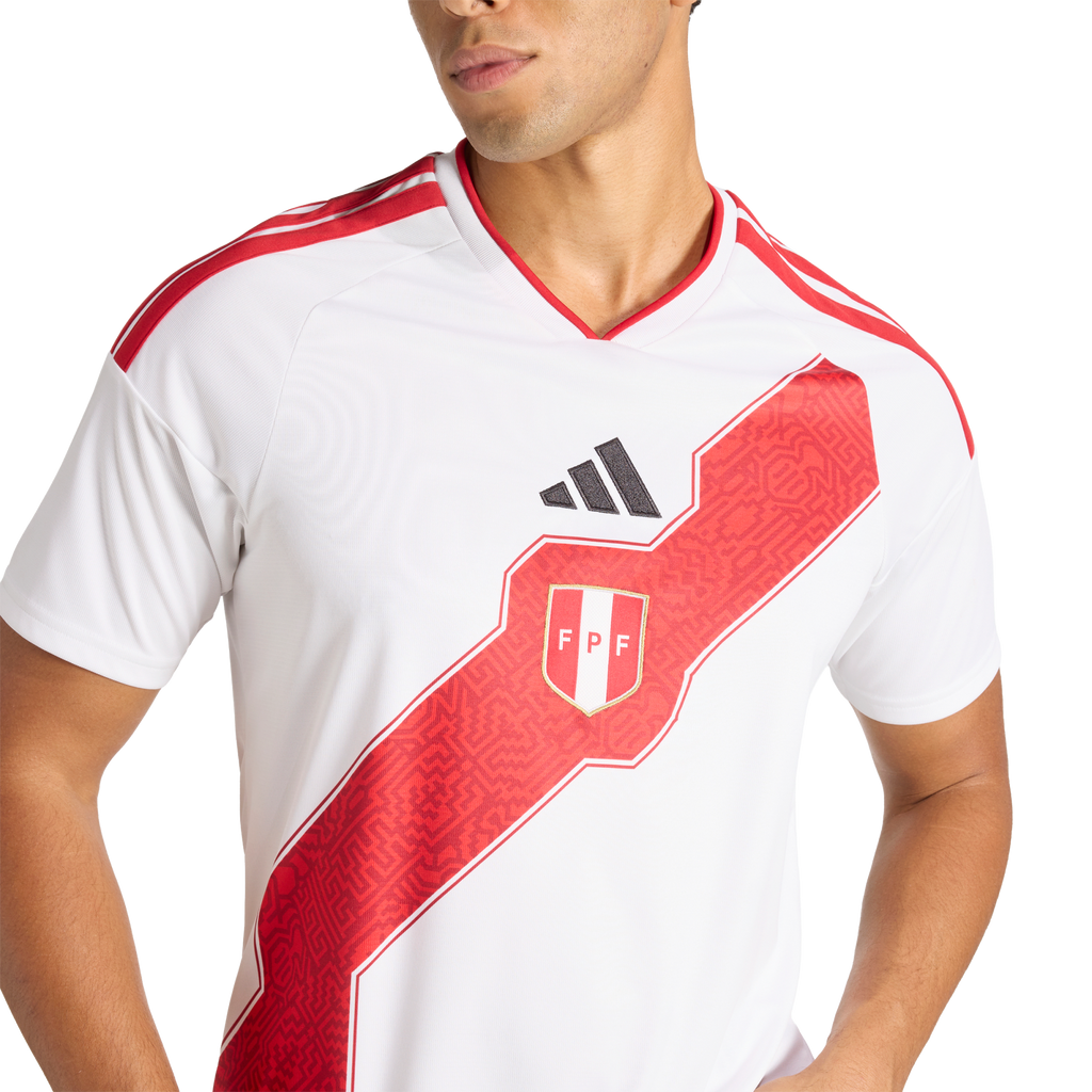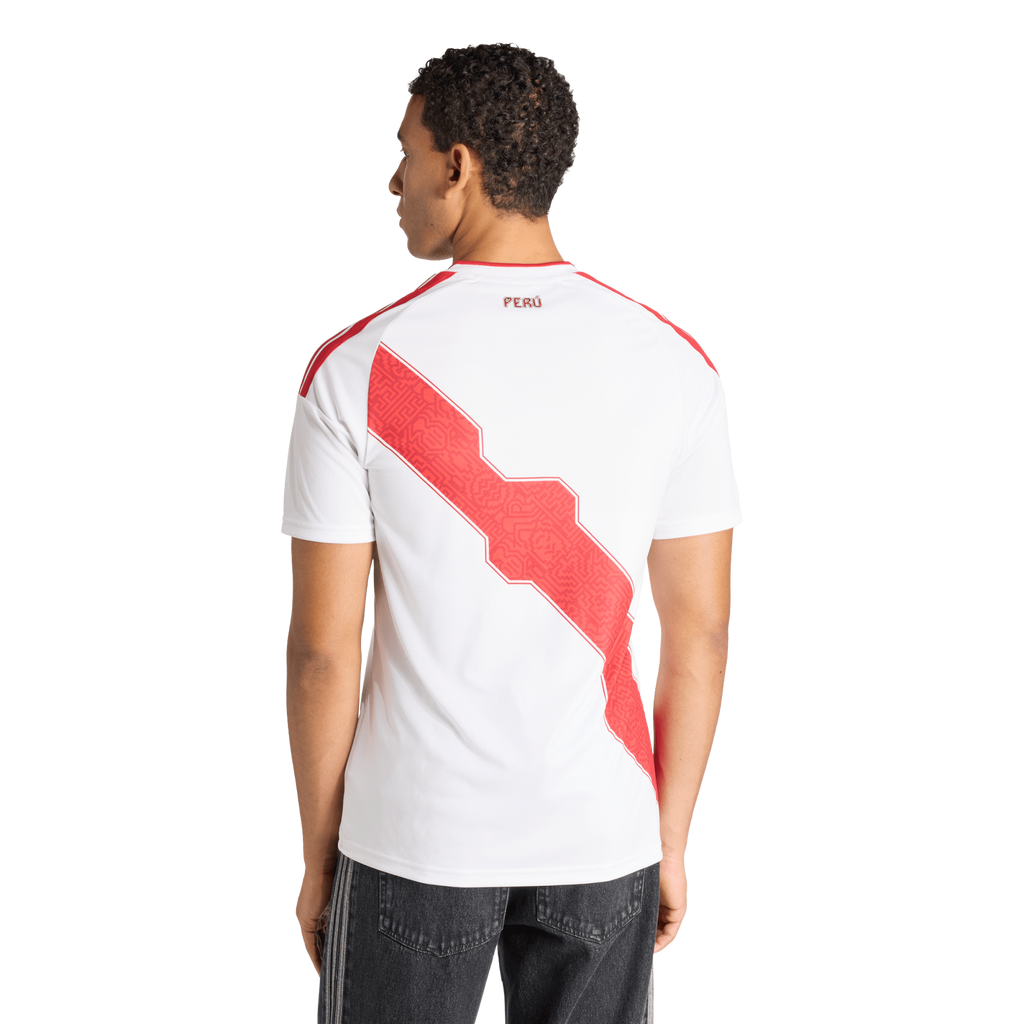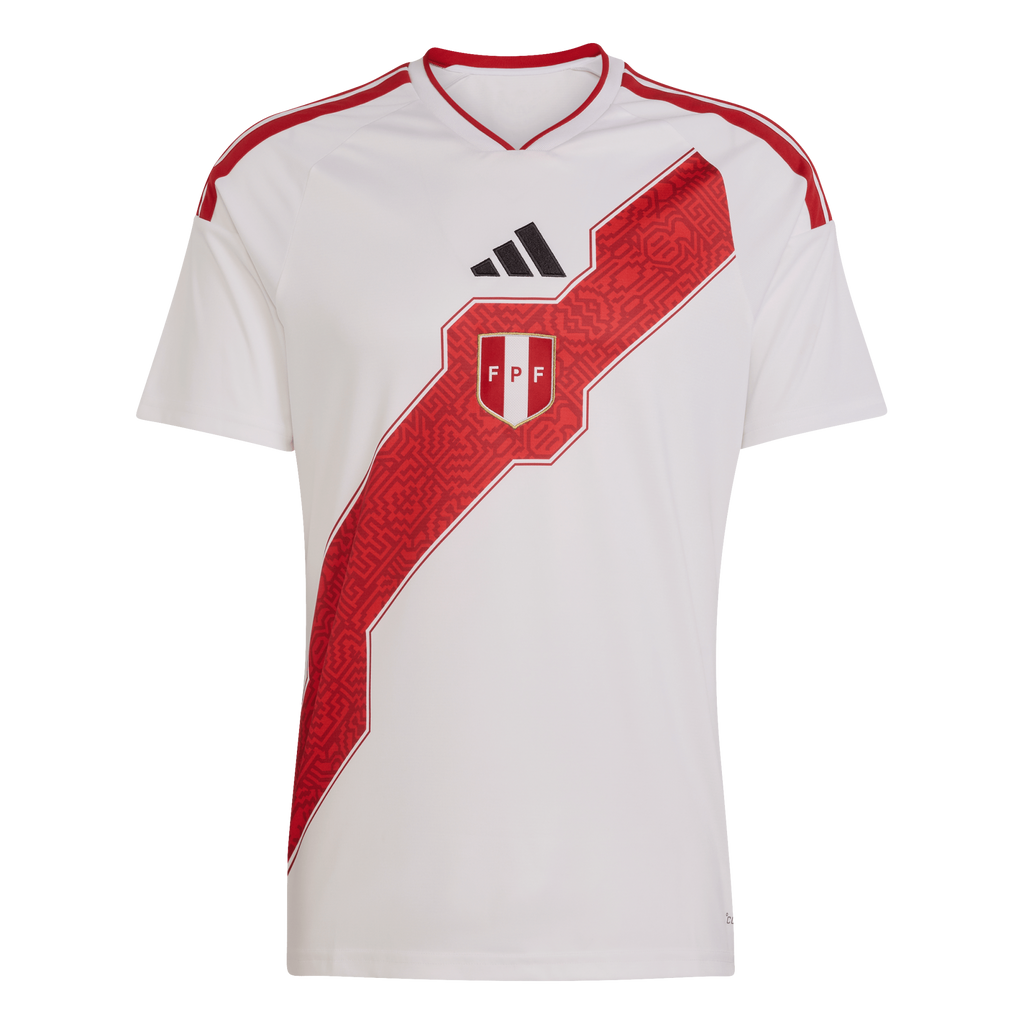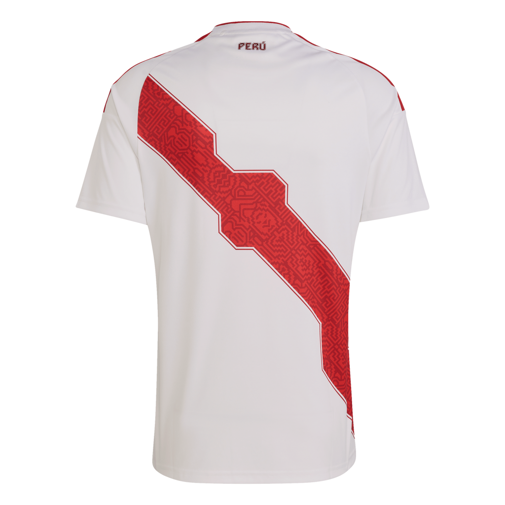 Celebrate the rich tapestry of Peru with the Peru 26 Home Shirt, inspired by the diverse landscapes and cultural heritage of Peru. This jersey brings the spirit of La Cordillera de los Andes, the coastline, highlands and rainforest to life. This jersey features Climacool materials that wick and manage sweat quickly. The bold 3-Stripes and EQT collar adding style and functionality. Experience the vibrant culture of Peruvian football with adidas. Whether in the stands or on the pitch, show your support for your national team.
