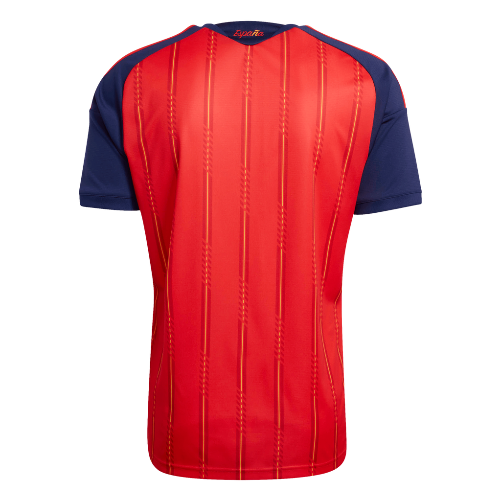 The Spain 26 Home Jersey is a tribute to the passion and heritage of Spanish football. Inspired by the vibrant colours of the Spanish flag, it’s designed to make a statement both on and off the pitch. COOL. DRY. READY. Climacool wicks and disperses sweat for a cool, dry and distraction-free performance. The quick drying interlock knit fabric helps you feel comfortable during intense matches, so you can focus on your performance. Its slim fit creates a sleek silhouette that moves with you, while the rib collar adds a classic look. The adidas branding elements and team crest round off the jersey adding to its elegant style. Whether you're cheering from the stands or taking part in a match, express your pride for the Spanish national team with this iconic jersey from adidas that embodies the spirit of football.