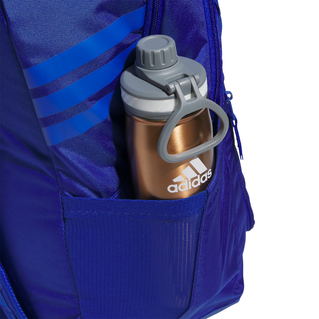 Made from lightweight, durable polyester, this versatile adidas backpack keeps stuff organised and dry thanks to a water-resistant base. Multiple zip pockets keep your gear separated, including one that can hold a size 5 soccer ball and two mesh side pockets that can each hold a 32 oz water bottle. There's also a vented pocket to store dirty gear and a clip to attach essentials. Score!